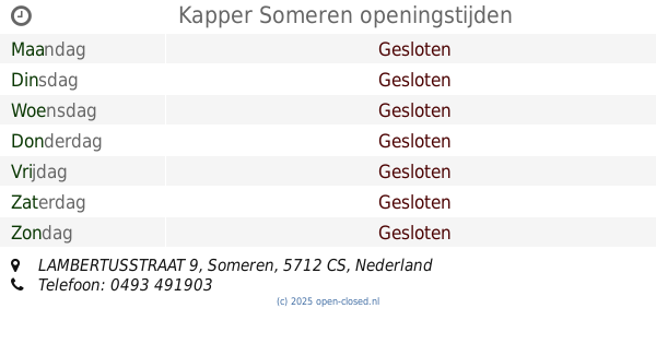 Het is ook mogelijk: Bewerk deze OPENINGSTIJDEN van Winkel Kapper In Someren, LAMBERTUSSTRAAT 9,